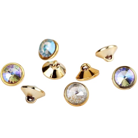 Bottone in plastica ABS BA60401 con gambo in oro eco-friendly con decorazione di strass
